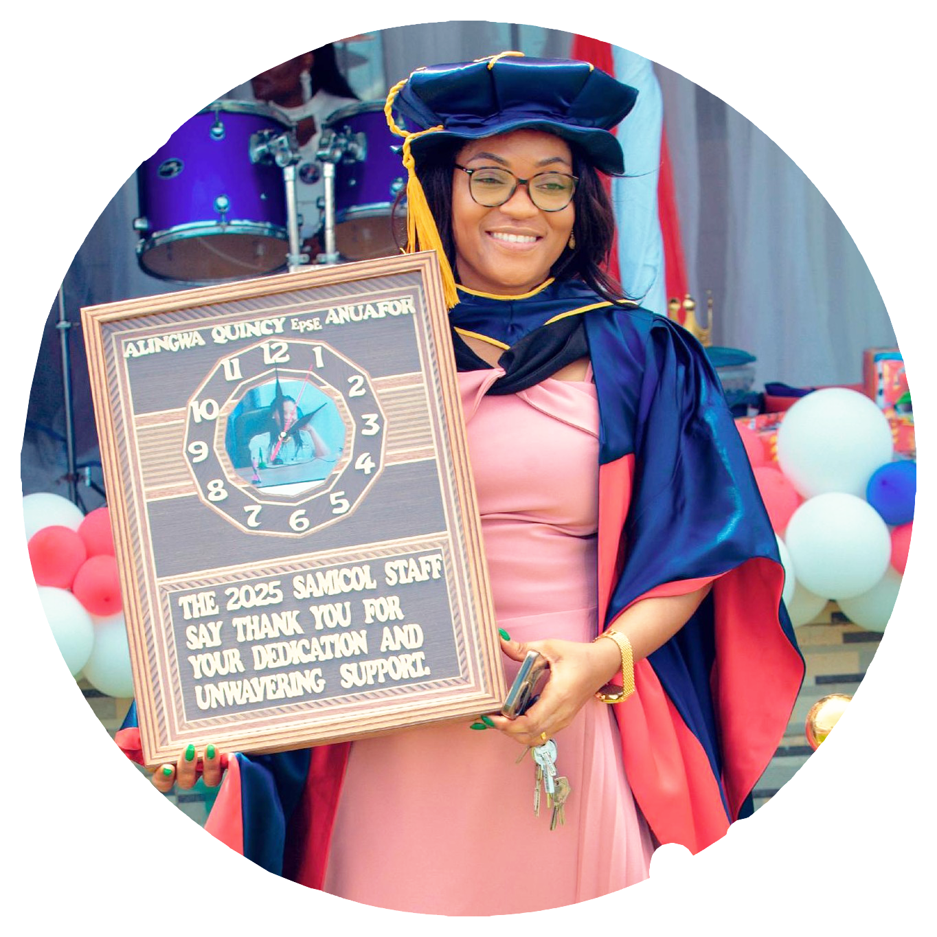 Alingwa Quincy Ngeniwe was born on January 29th, 1988, in Bamenda-Mezam, Cameroon, to a loving family. Her mother, Alingwa Christina Fri, was a dedicated teacher, while her father, Alingwa Joseph Tangwe, served in the military. Both parents are from the Bambili village in the Northwest Region of Cameroon. Growing up in a family with such diverse professional backgrounds, Quincy was instilled with a deep sense of discipline, responsibility, and the value of education.